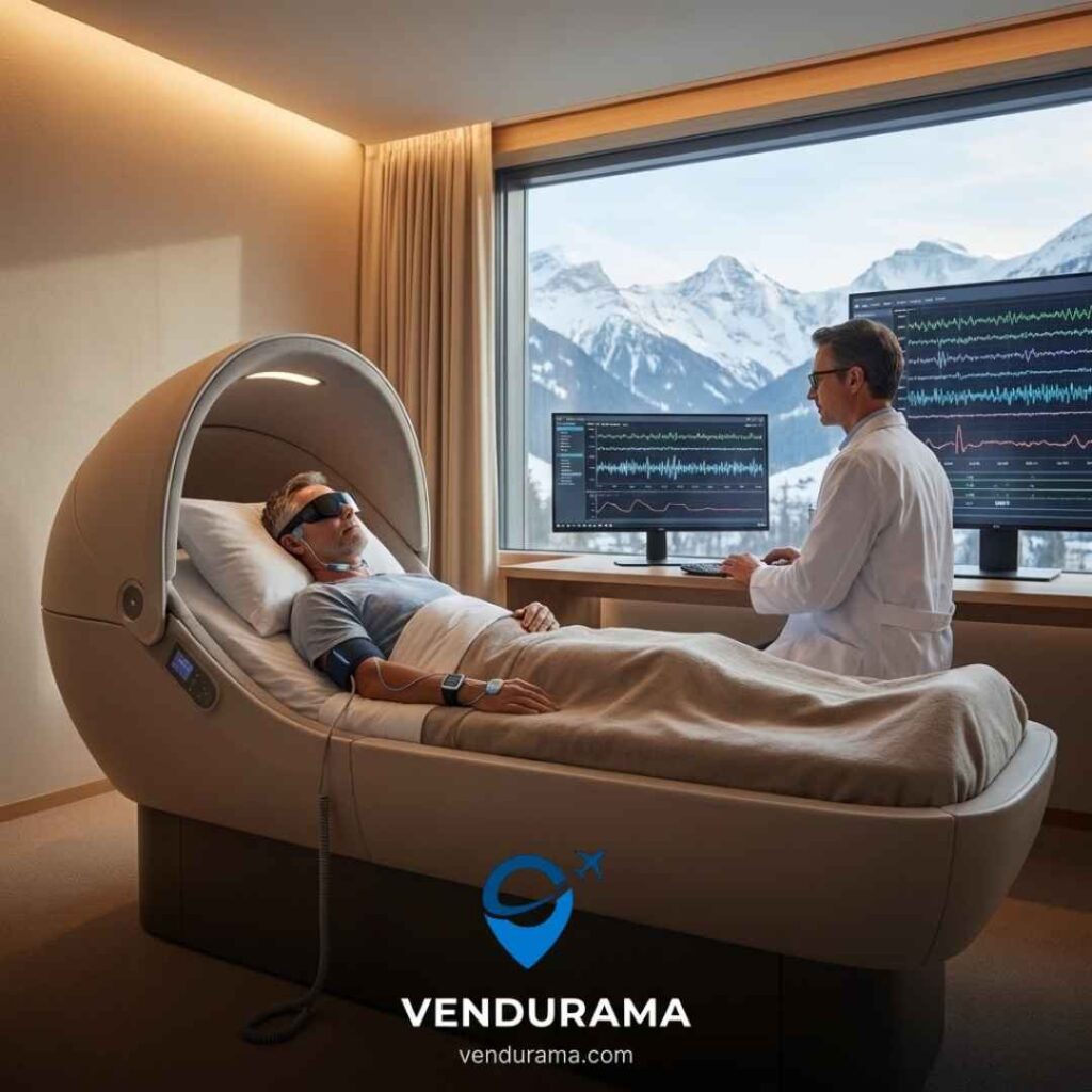 Nestled in the Tamina Valley, this facility has developed Switzerland’s most comprehensive Sleep Medicine Center—integrating polysomnography laboratories with thermal spring hydrotherapy. The clinical innovation lies in leveraging Bad Ragaz’s 36.5°C thermal waters for evening immersion protocols that accelerate core body temperature decline—a physiological trigger for sleep onset. Patients undergo 20-minute immersion 90 minutes before target bedtime, creating a 0.8-1.2°C core temperature drop that reduces sleep onset latency by 42-48%. The facility’s PSG laboratory operates with 32-channel EEG capability, permitting quantitative analysis of sleep microstructure beyond standard clinical protocols. Treatment packages range from €12,000-€18,000 for 7-night programs, with extended 14-night protocols reaching €28,000-€35,000 for complex insomnia cases requiring comprehensive chronobiological recalibration.