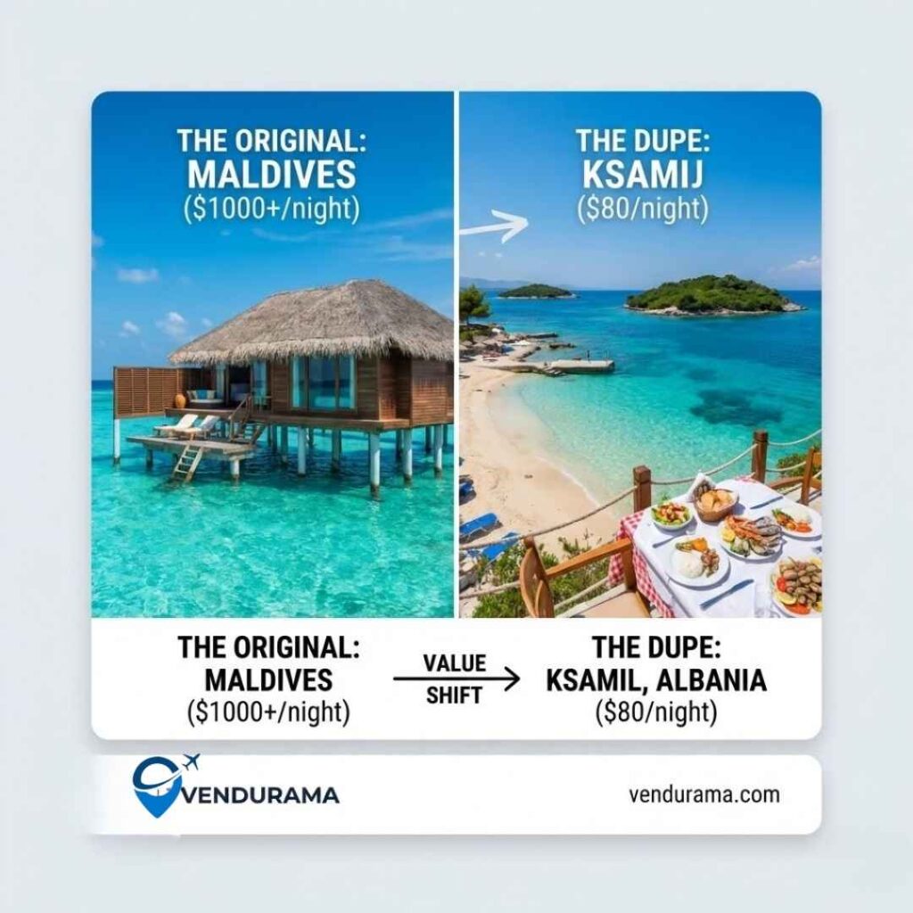 The Original: The Maldives is the archetype of tropical luxury. It is synonymous with isolation, turquoise waters, and bills that can exceed $1,000 per night. The Dupe: Ksamil, Albania.
